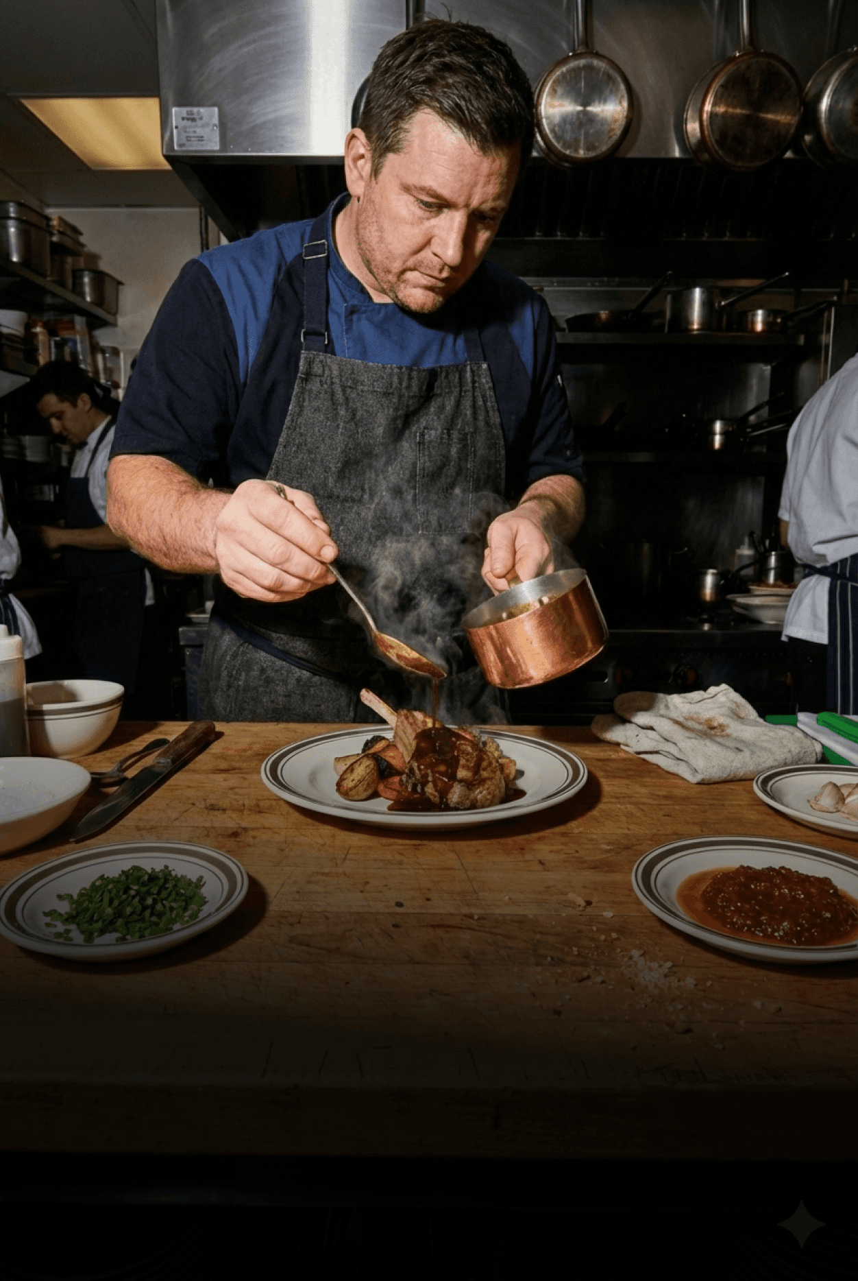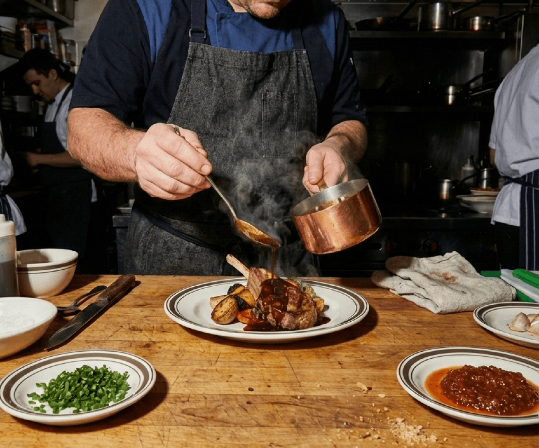 Plats signatures servis en grandes pièces à partager